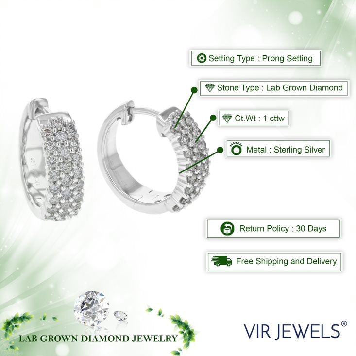 1 cttw Round Cut Lab Grown Diamond .925 Sterling Silver Hoop EarringsProng Set 2/3 Inch