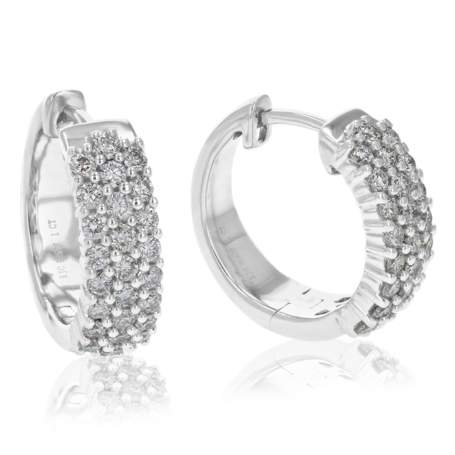 .925 sterling silver, 50 round lab-grown diamonds, 1 cttw, H-I color, SI1-SI2 clarity, prong setting, hoop dimensions: 5 mm width x 16 mm height.