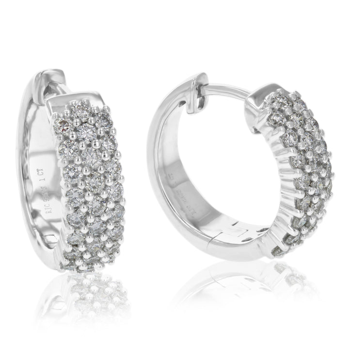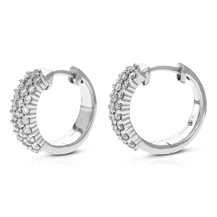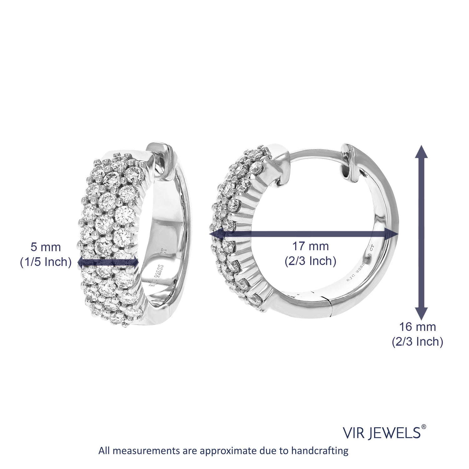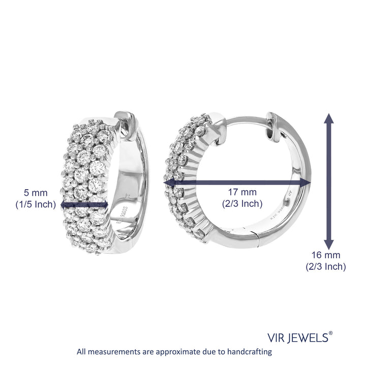 These 1 cttw Round Cut Lab Grown Diamond Hoop Earrings by Vir Jewels feature 50 round diamonds set in .925 sterling silver. The prong setting securely holds each diamond, maximizing their brilliance while ensuring durability. Lab-grown diamonds are a responsible and sustainable choice, offering the same beauty and properties as natural diamonds. With a width of 5 mm and height of 16 mm, these hoop earrings are a perfect balance of elegance and style, adding a sophisticated touch to any outfit.