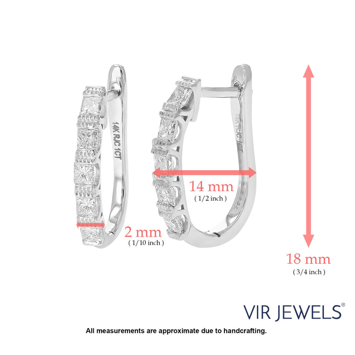 1 cttw Princess Diamond Hoop Earrings 14K White Gold Milgrain Prong Set 3/4 Inch