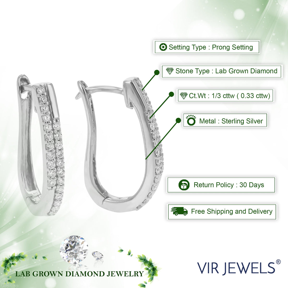 These 1/3 cttw Round Lab Grown Diamond Hoop Earrings by Vir Jewels offer a refined balance of sophistication and everyday wearability. Set in sterling silver, 46 brilliant lab-grown diamonds are prong-set along the classic hoop silhouette, ensuring maximum sparkle from every angle. Their sleek, lightweight design makes them ideal for both special occasions and daily elegance, while the secure clasp keeps them comfortably in place. A timeless addition to any jewelry collection, these hoops exude understated luxury.