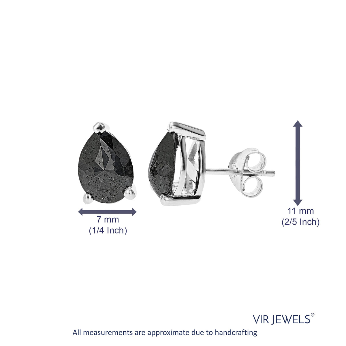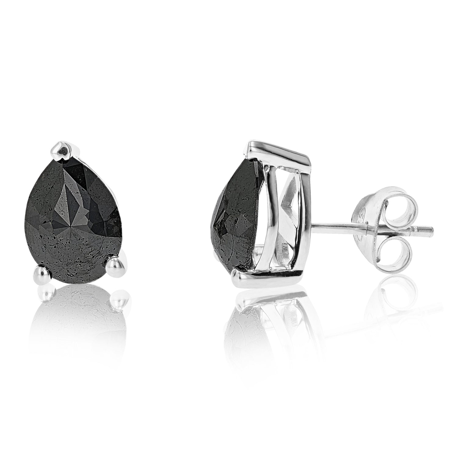 Sterling silver. Natural black diamonds, 3 cttw. Diamond cut: Pear. Diamond color: Black. Diamond clarity: I1-I2. Earrings dimensions: 7mm x 11mm. Closure: Push-back.