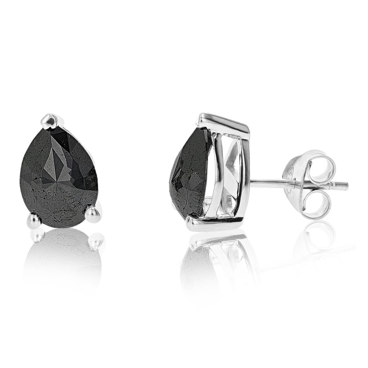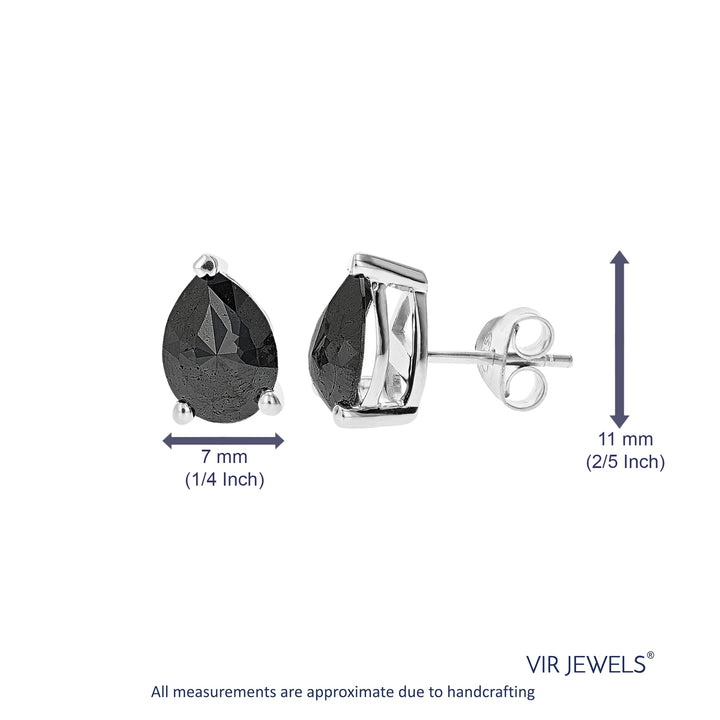 3 cttw Pear Shape Black Diamond Stud Earrings .925 Sterling Silver Prong Set