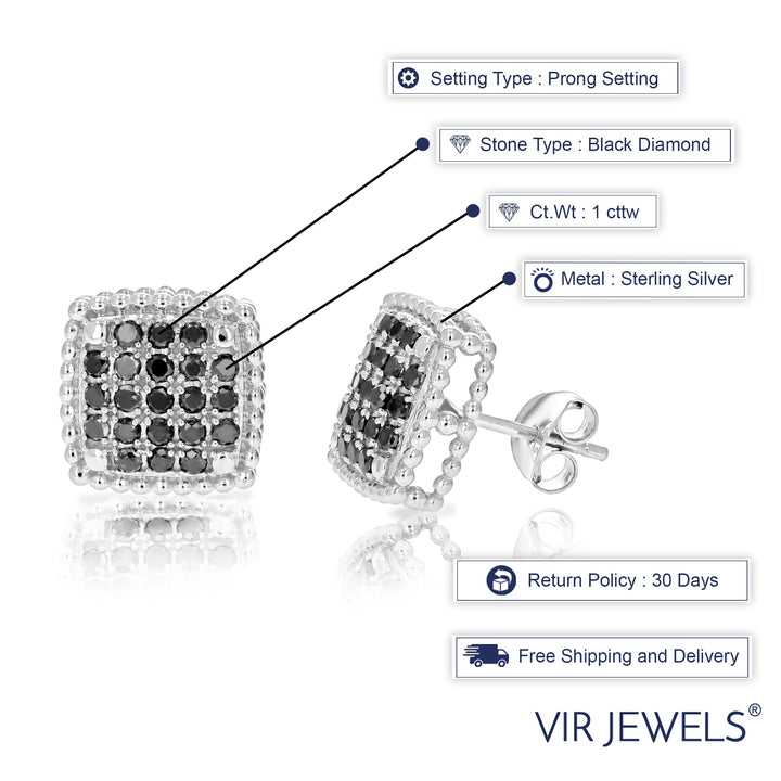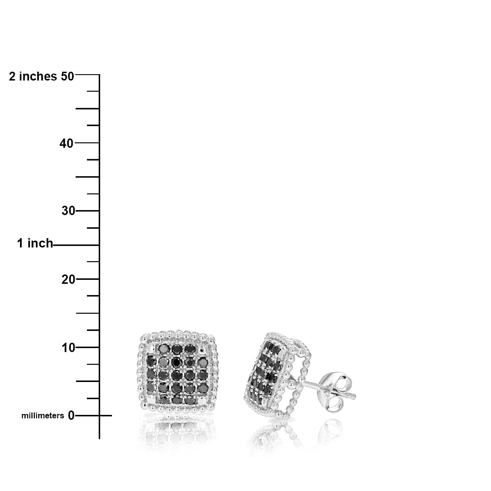 1 cttw Black Diamond Cluster Composite Stud Earrings .925 Sterling Silver 1/2 Inch