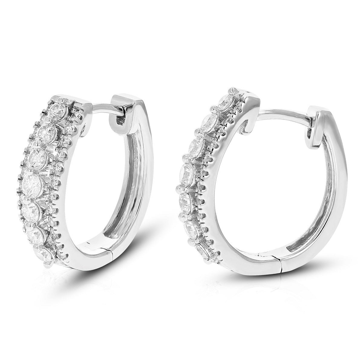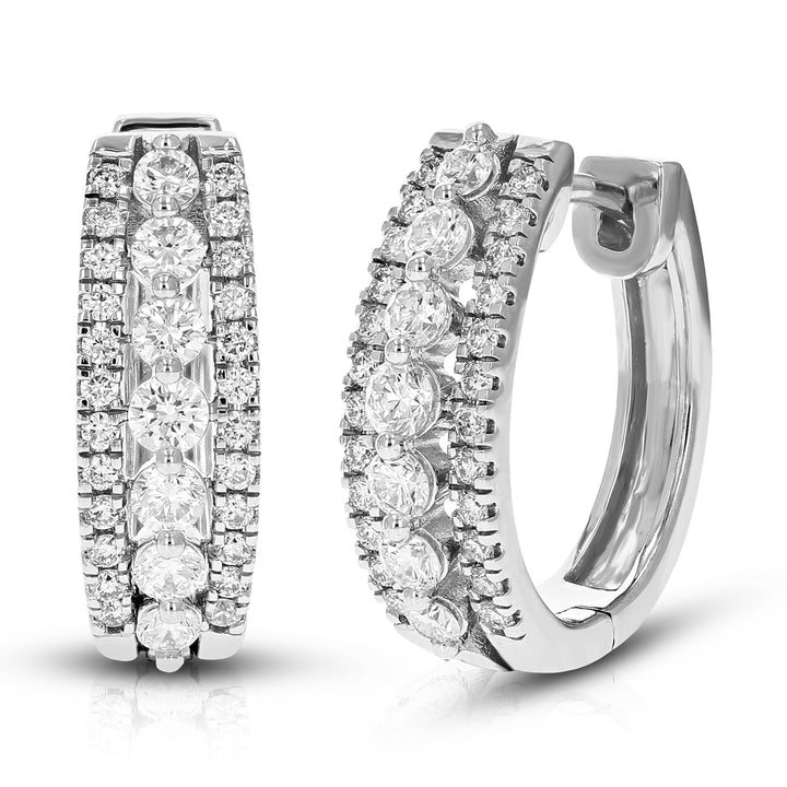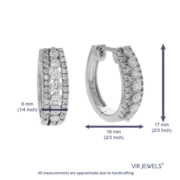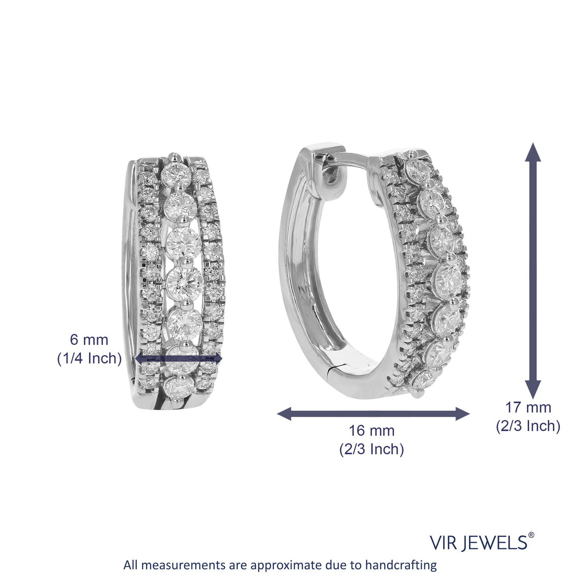 These 1 cttw Round Lab Grown Diamond Hoop Earrings by Vir Jewels feature 62 round diamonds set in .925 sterling silver. The prong setting securely holds the diamonds, enhancing their brilliance while providing durability. Lab-grown diamonds offer the same beauty and strength as natural diamonds, making them a responsible and ethical choice. With a width of 6 mm and a height of 17 mm, these hoop earrings are the perfect balance of sophistication and style, elevating any outfit with their elegance.