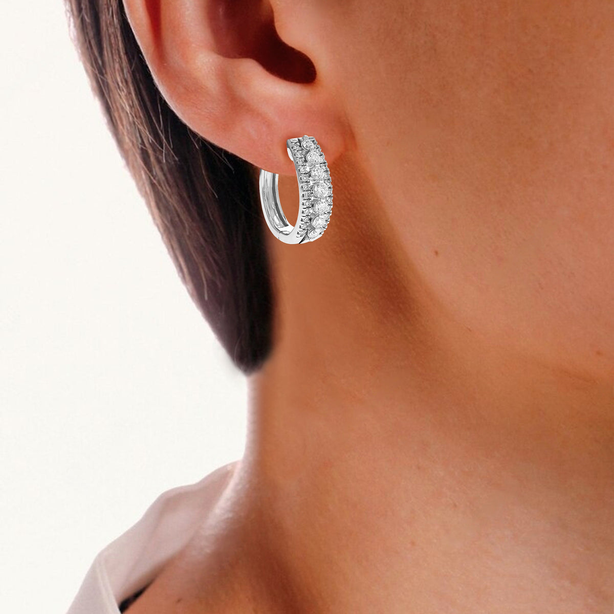 .925 sterling silver, 62 round lab-grown diamonds, 1 cttw, H-I color, SI1-SI2 clarity, prong setting, hoop dimensions: 6 mm width x 17 mm height.
