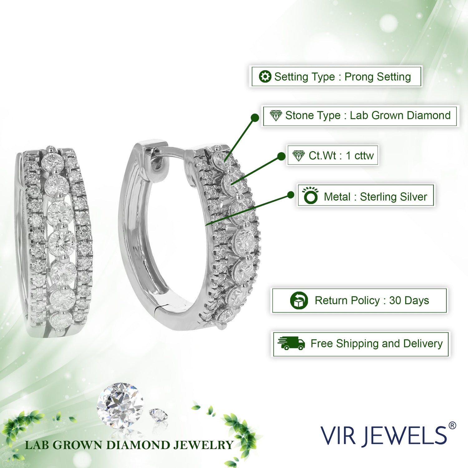 1 cttw Round Lab Grown Diamond .925 Sterling Silver Hoop EarringsProng Set 2/3 Inch