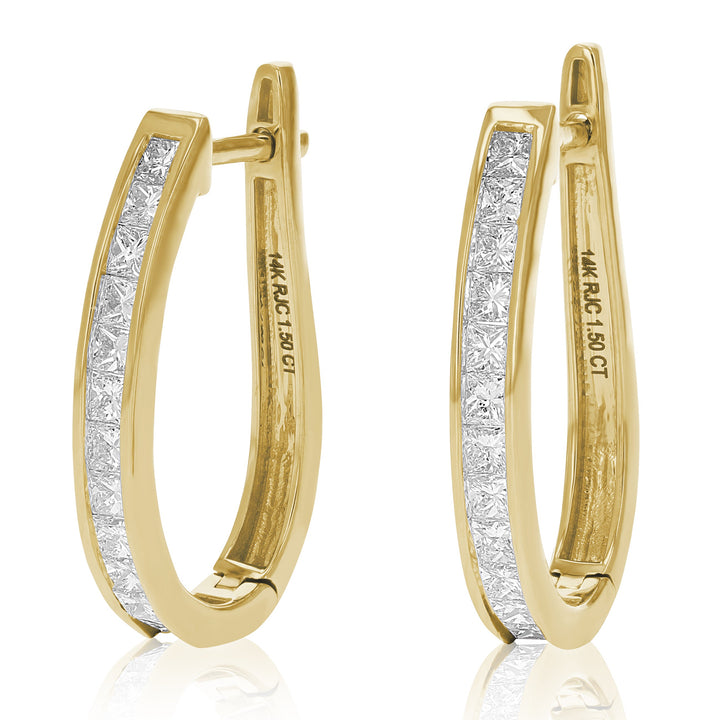 1.50 cttw Princess Cut Diamond Hoop Earrings 14K Yellow Gold Channel Set 1 Inch