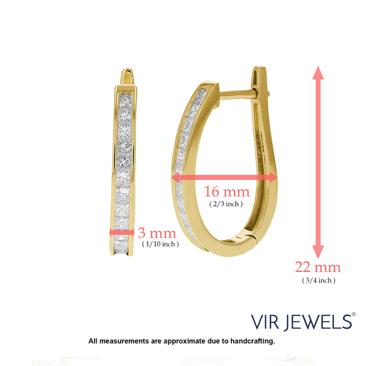 These 1.50 cttw Princess Cut Diamond Hoop Earrings by Vir Jewels redefine classic luxury with a modern twist. Featuring 26 princess-cut diamonds, these earrings showcase brilliance and precision with a channel setting that allows light to reflect beautifully. Crafted in 14kt yellow gold, the sleek and elegant hoops are designed to add a refined sparkle to any look. Perfect for everyday wear or special occasions, these hoops are a timeless addition to any fine jewelry collection.