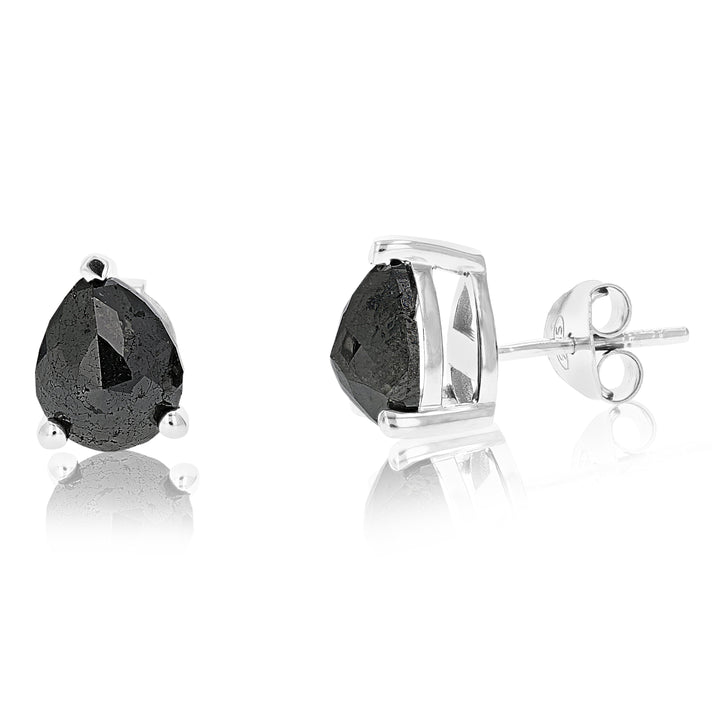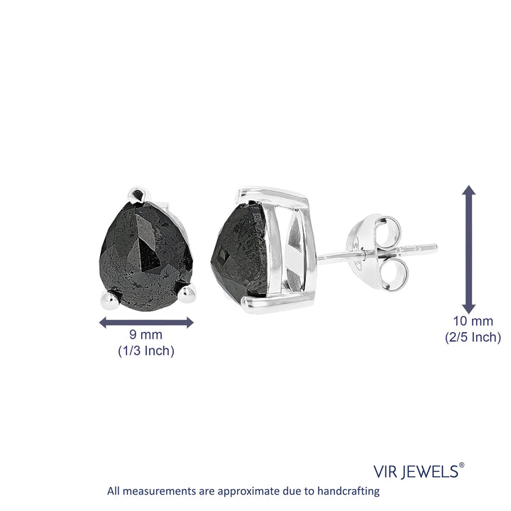 .925 sterling silver. 3.50 ct. total weight of natural black diamonds. Prong-set pear-shaped stones. Size: 9mm width, 10mm length. Closure: Push-back.