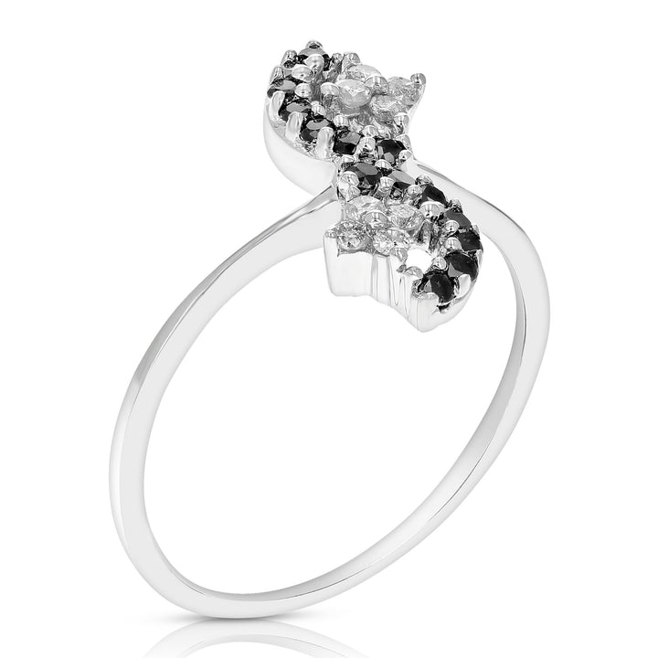 This 1/3 cttw Black Diamond Ring Fashion Round in 10K White Gold by Vir Jewels is a bold statement piece featuring natural black diamonds and white diamonds set in a 10K white gold band. The 1/3 carat total weight of diamonds gives this cocktail ring an eye-catching sparkle, while the contrasting colors of the diamonds add depth and sophistication. This ring is perfect for adding a modern and edgy touch to any outfit, making it an ideal choice for a fashion-forward individual who appreciates luxury with a bit of an edge.