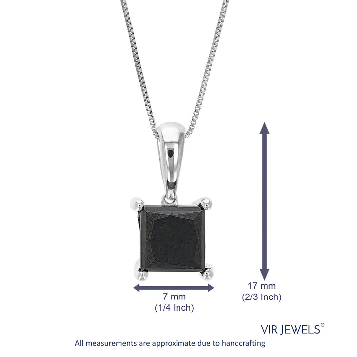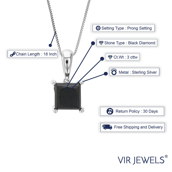 3 cttw Princess Cut Black Diamond Pendant Necklace Sterling Silver With Chain