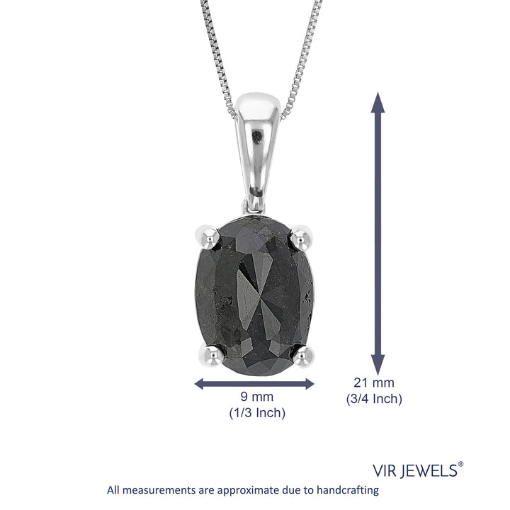 This captivating oval-shaped black diamond pendant by Vir Jewels exudes luxury and timeless elegance. The 4-carat black diamond is set in .925 sterling silver, creating a striking contrast between the deep black hue of the diamond and the gleaming metal. The prong setting securely holds the diamond, highlighting its brilliance and ensuring it remains a focal point of your look. Whether for a special occasion or as an everyday statement piece, this pendant necklace combines sophistication with versatility, making it an ideal addition to any jewelry collection.