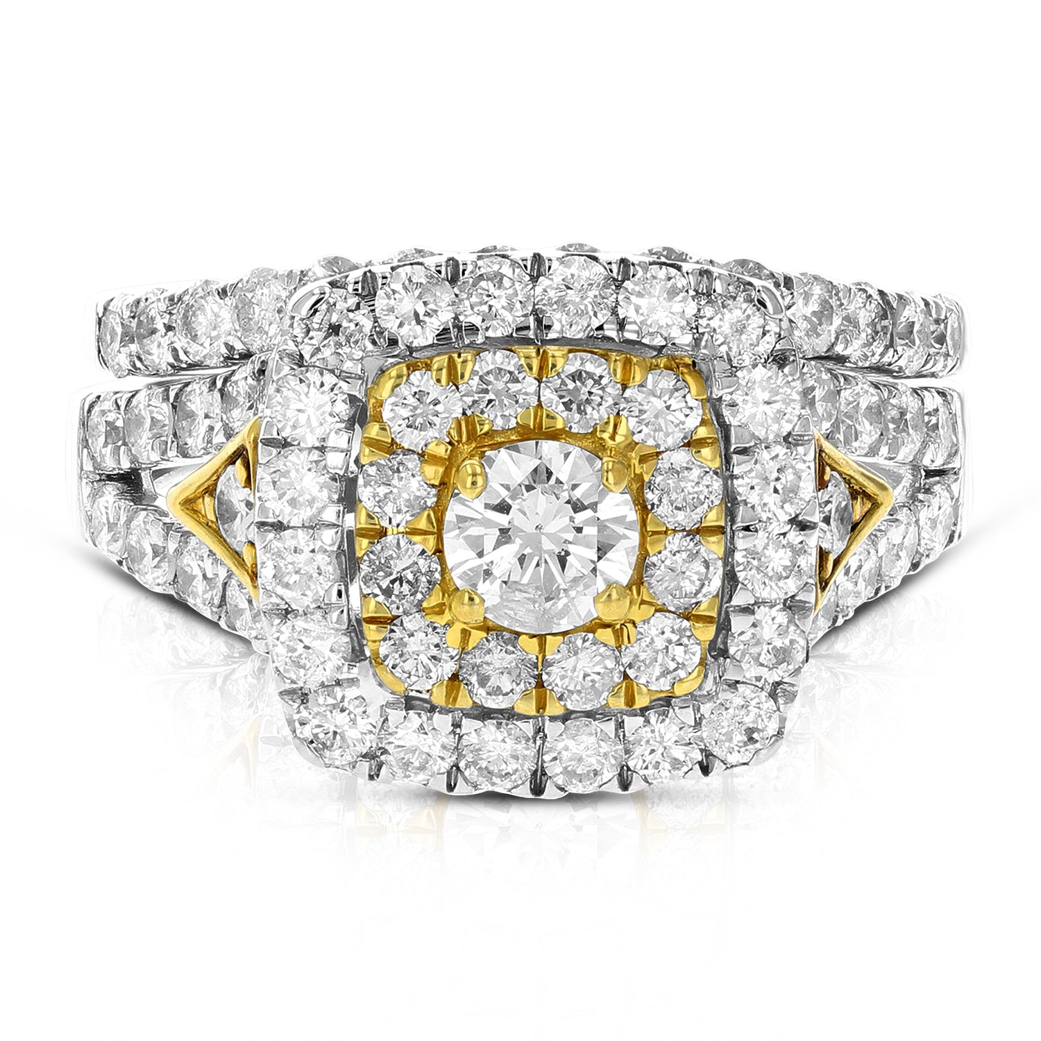 2 cttw Diamond Wedding Engagement Ring Set 14K Two Tone Gold Bridal Set Cushion