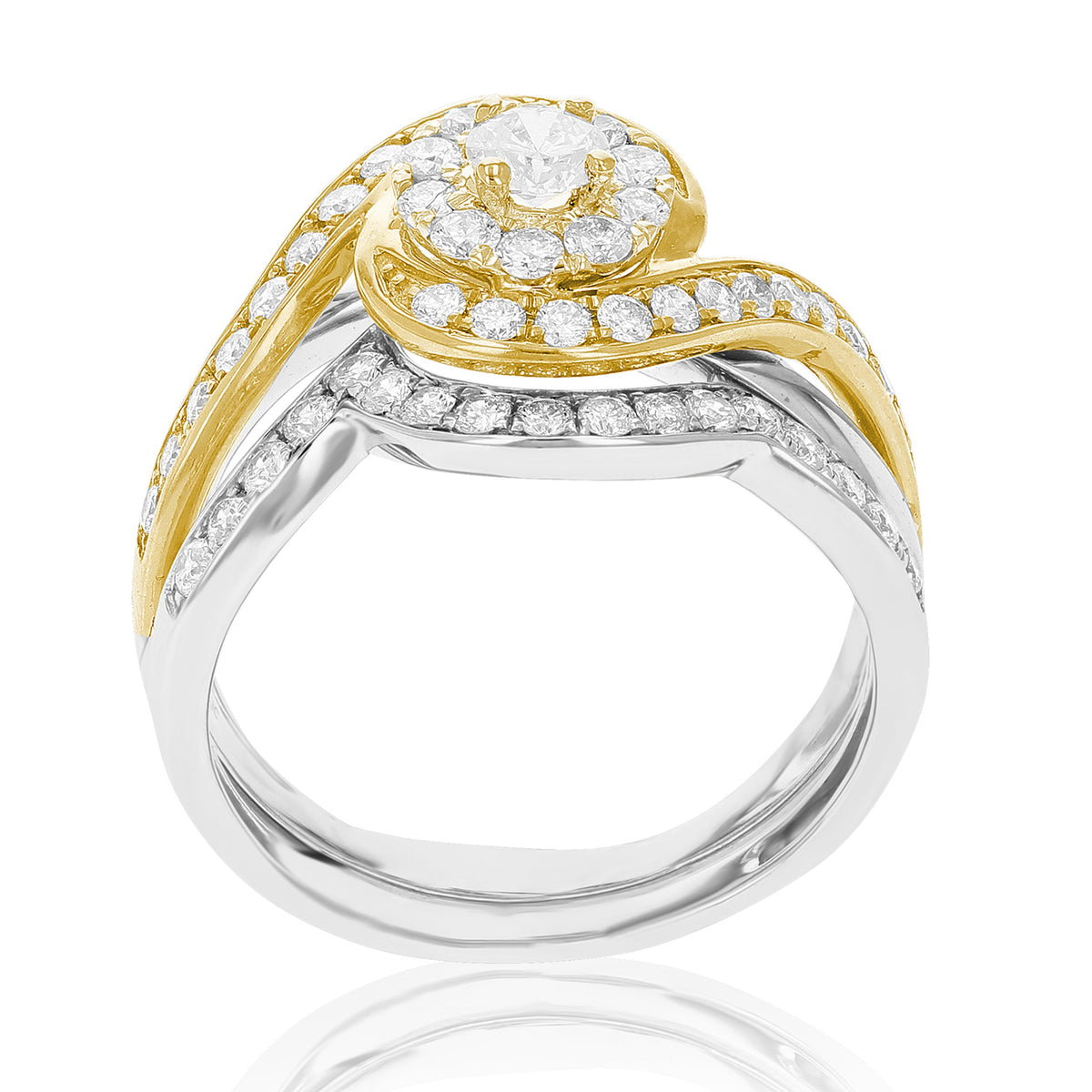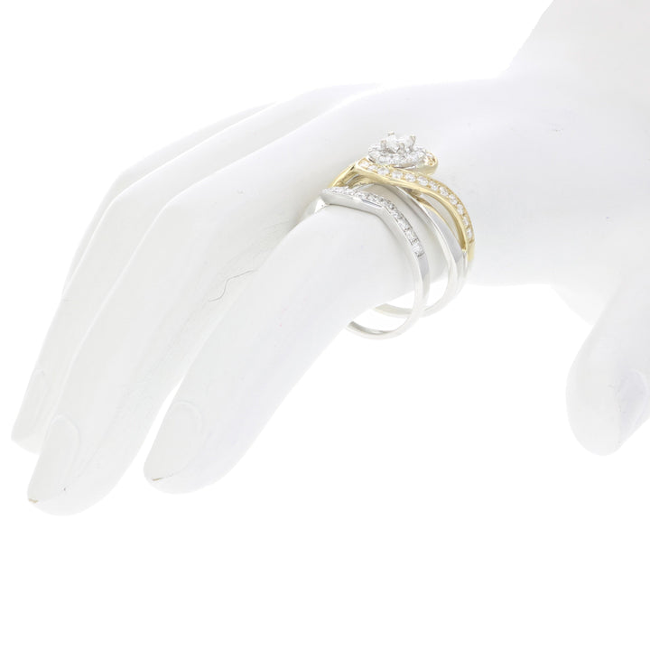 1 cttw Diamond Wedding Engagement Ring Set 14K Two Tone Gold Halo Bridal Design