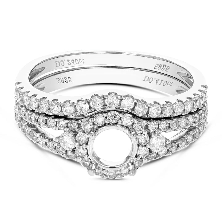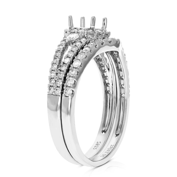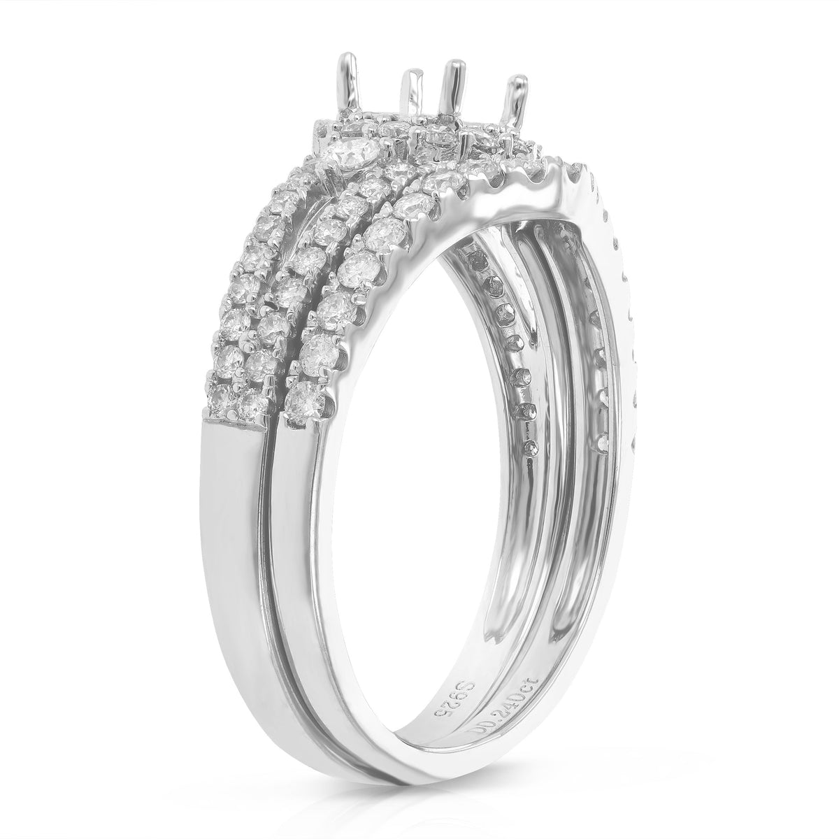 2/3 cttw Diamond Semi Mount Bridal Set Prong Set .925 Sterling Silver