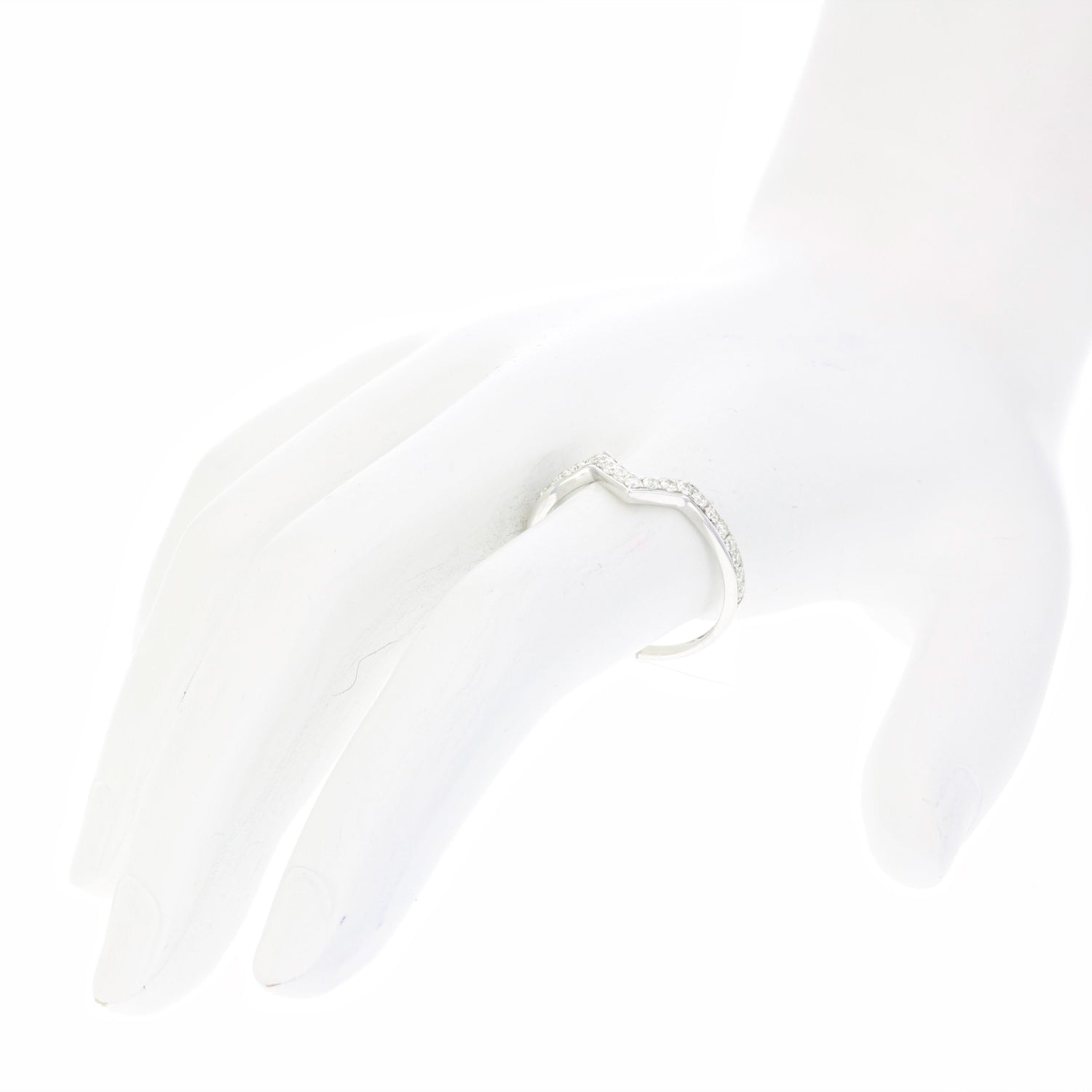 Crafted in 14K white gold, the band features 21 round-cut diamonds totaling 1/3 cttw. The diamonds have I1-I2 clarity and I-J color. The band is designed with a wave style for a modern look.