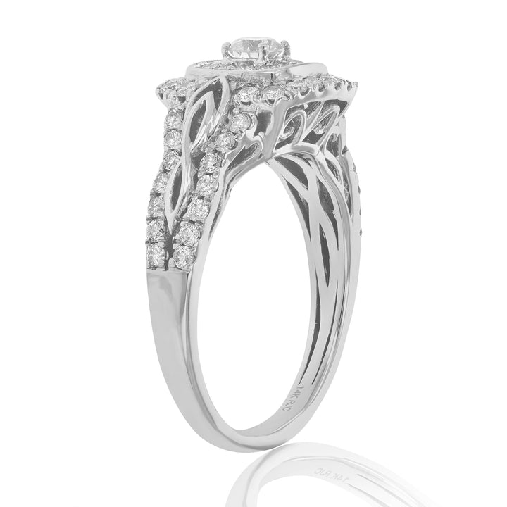 3/4 cttw Diamond Engagement Ring 14K White Gold Halo Composite Prong Set