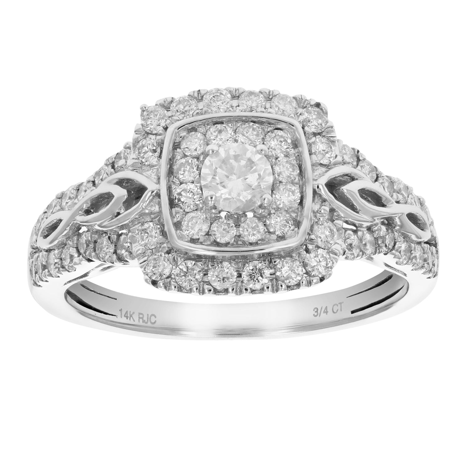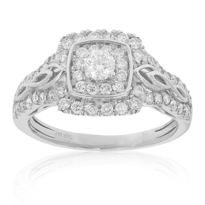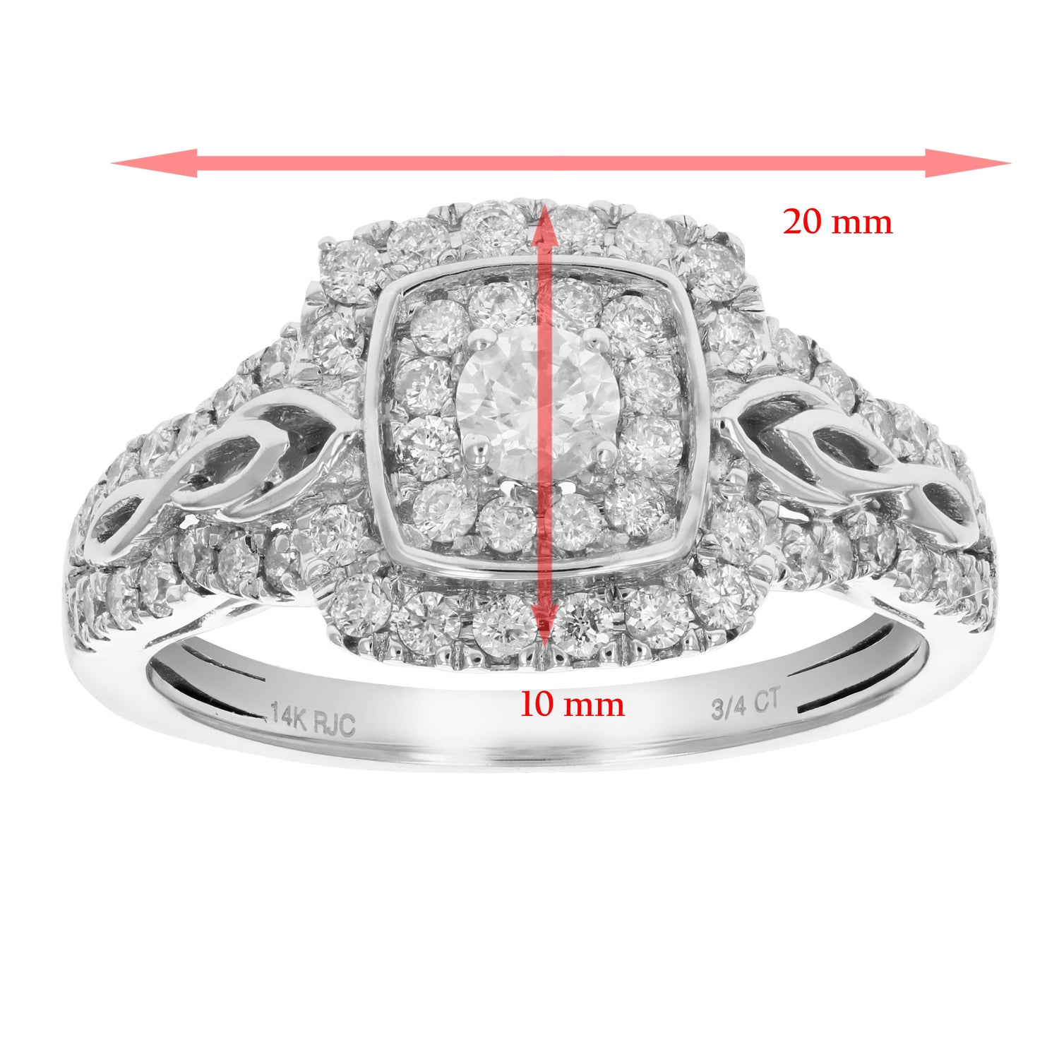 This 3/4 cttw Diamond Engagement Ring in 14K White Gold from Vir Jewels is the perfect symbol of love and commitment. The center diamond, weighing 0.17 cttw, is surrounded by 56 side diamonds totaling 0.58 cttw in a halo design, set in prong settings. The high-quality diamonds and the elegant design make this ring an ideal choice for engagement or any special moment.