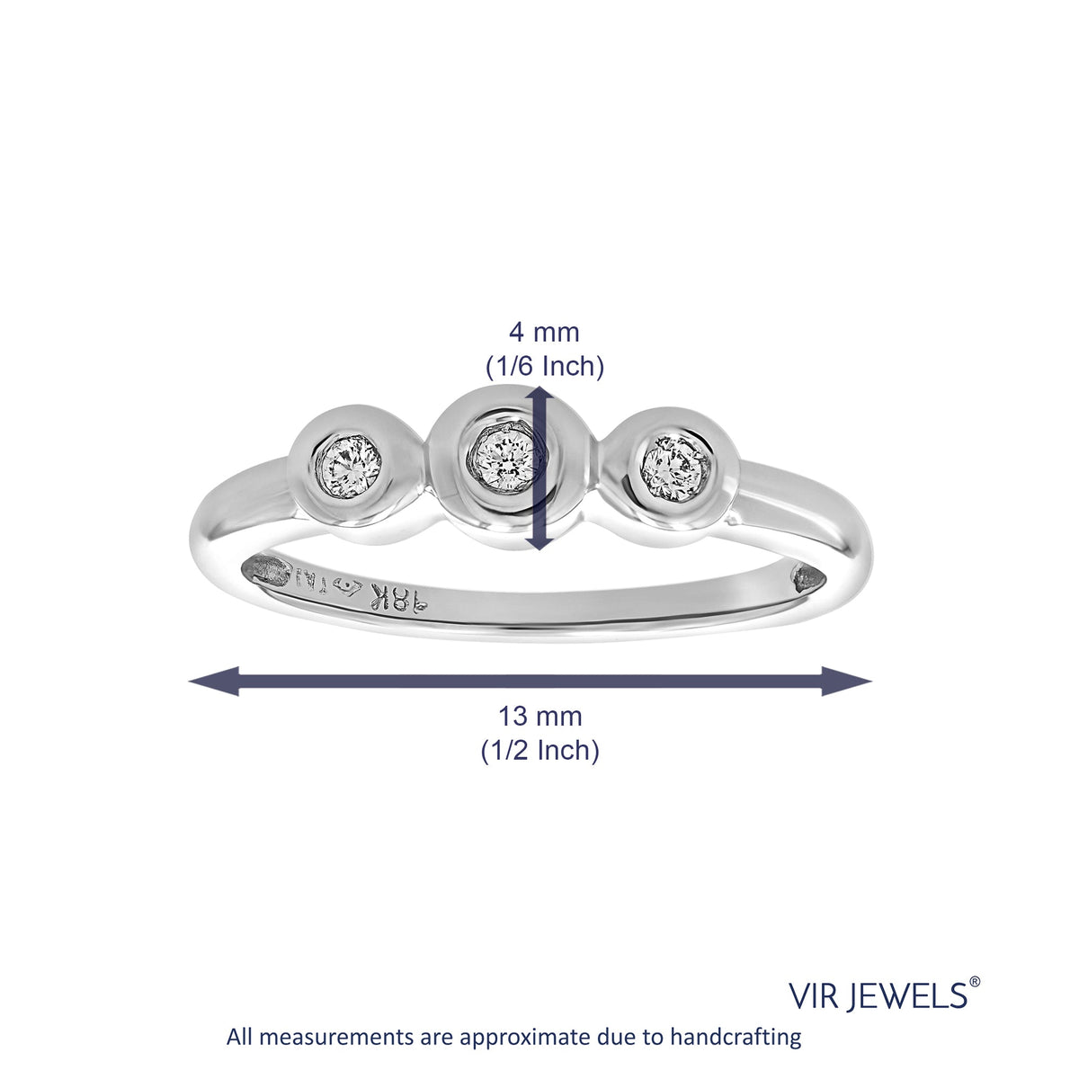 This 0.06 cttw Diamond 3-Stone Ring by Vir Jewels is a timeless piece featuring three round diamonds set in 18K white gold. The diamonds are arranged in a sleek, elegant style, perfect for engagements or as a symbol of love and commitment. The simplicity and brilliance of the diamonds make this ring a beautiful addition to any jewelry collection.