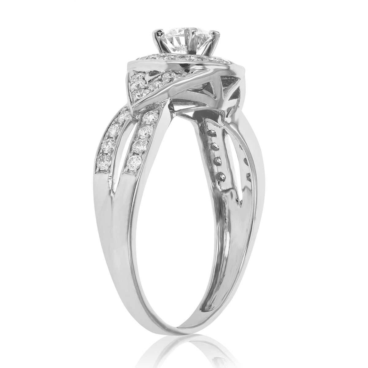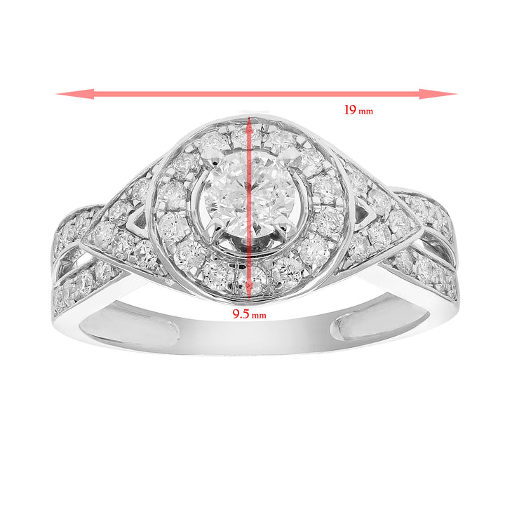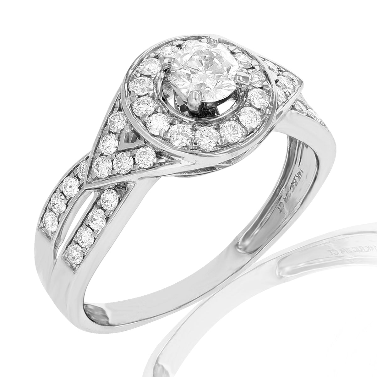 3/4 cttw Diamond Halo Round Wedding Engagement Ring 14K White Gold Bridal Ring
