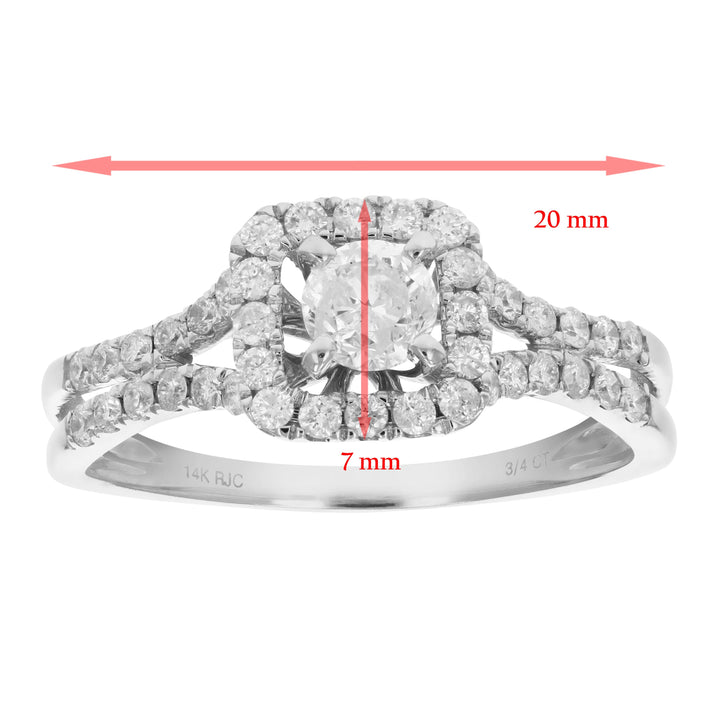 3/4 cttw Diamond Engagement Ring 14K White Gold Halo Style Prong Bridal