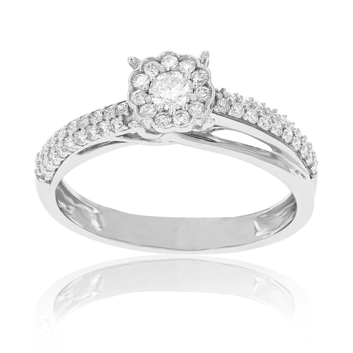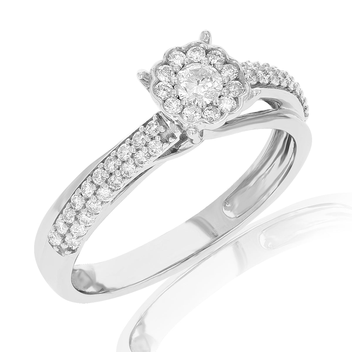 1/2 cttw Diamond Engagement Ring 14K White Gold Cluster Composite Bridal Wedding
