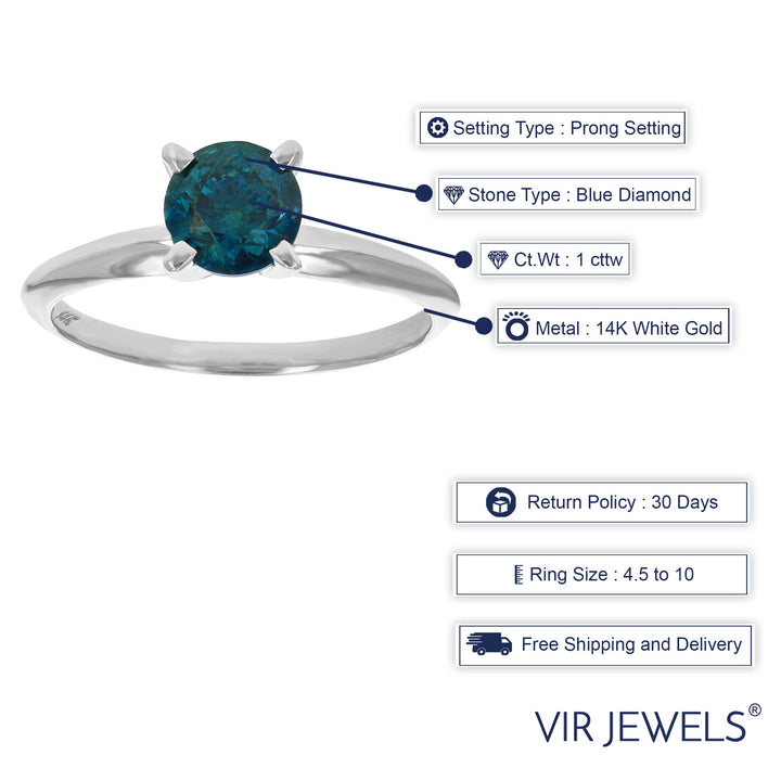 1 cttw IGI Certified I1 Clarity Blue Diamond Solitaire Ring 14K White Gold