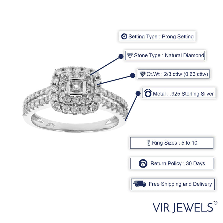 2/3 cttw Diamond Semi Mount Engagement Ring .925 Sterling Silver