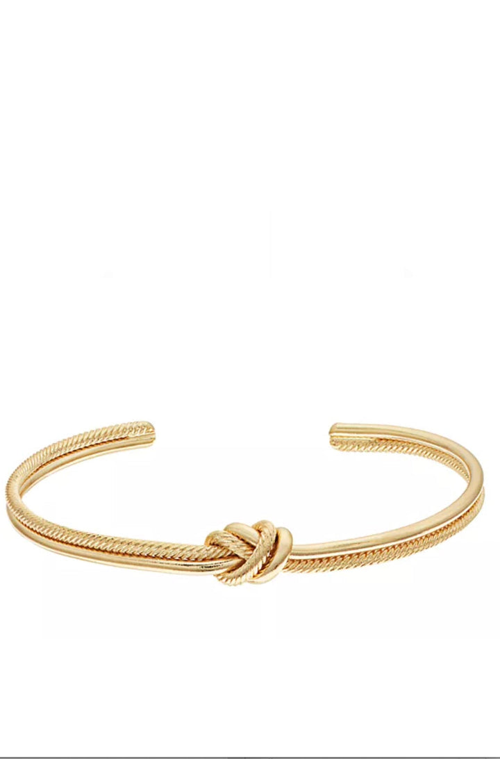 This 18k Gold Plated Knotted Bangle by Liv Oliver is a stunning piece that combines texture and elegance. The knotted design adds depth and sophistication, while the 18k gold plating ensures a radiant finish. This timeless bangle is perfect for both special occasions and everyday wear. Its classic design will effortlessly complement any outfit, making it a versatile addition to your jewelry collection. The 62mm inner diameter ensures a comfortable fit for most wrists.