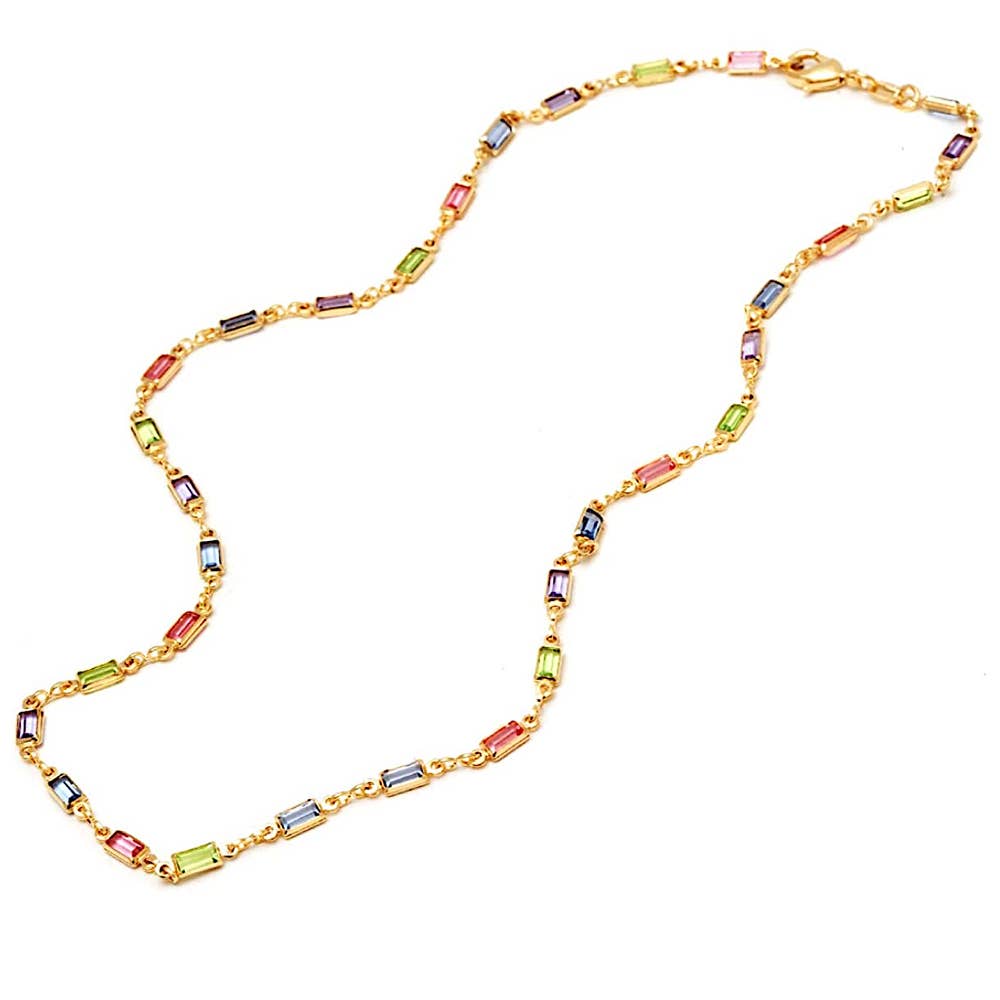 18K gold-plated material, multi-color design. Necklace length: 18 inches.