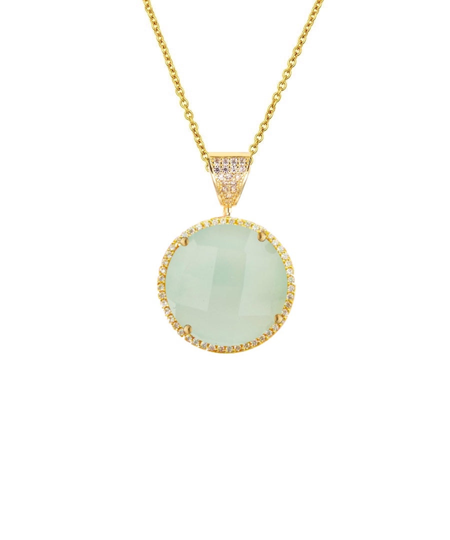 18k gold-plated metal. Chalcedony stone, cubic zirconia. Length: 16'.