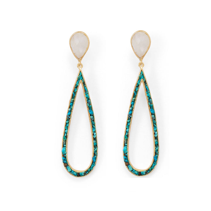 18k Gold Rainbow Moonstone And Turquoise Drop Earrings