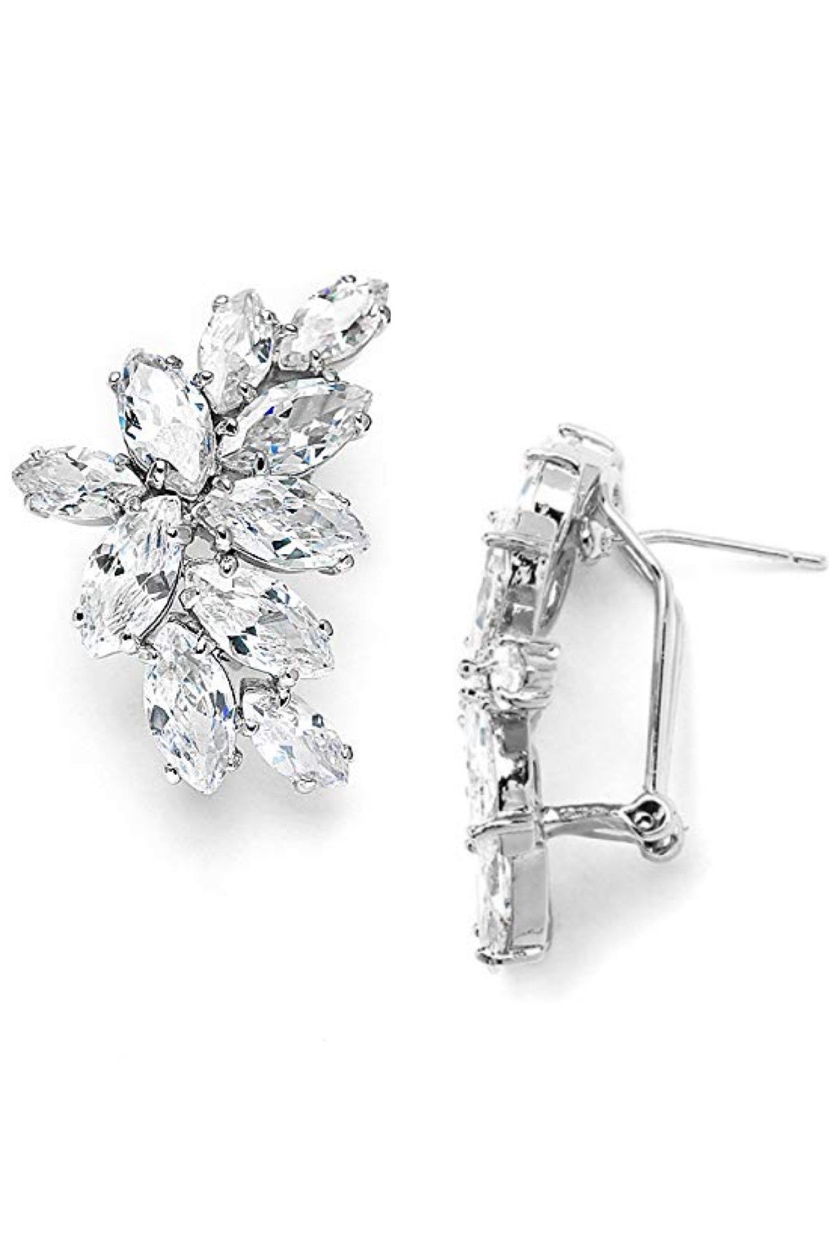 Crafted from silver with marquise-cut crystals. Length: 1¼ inches.