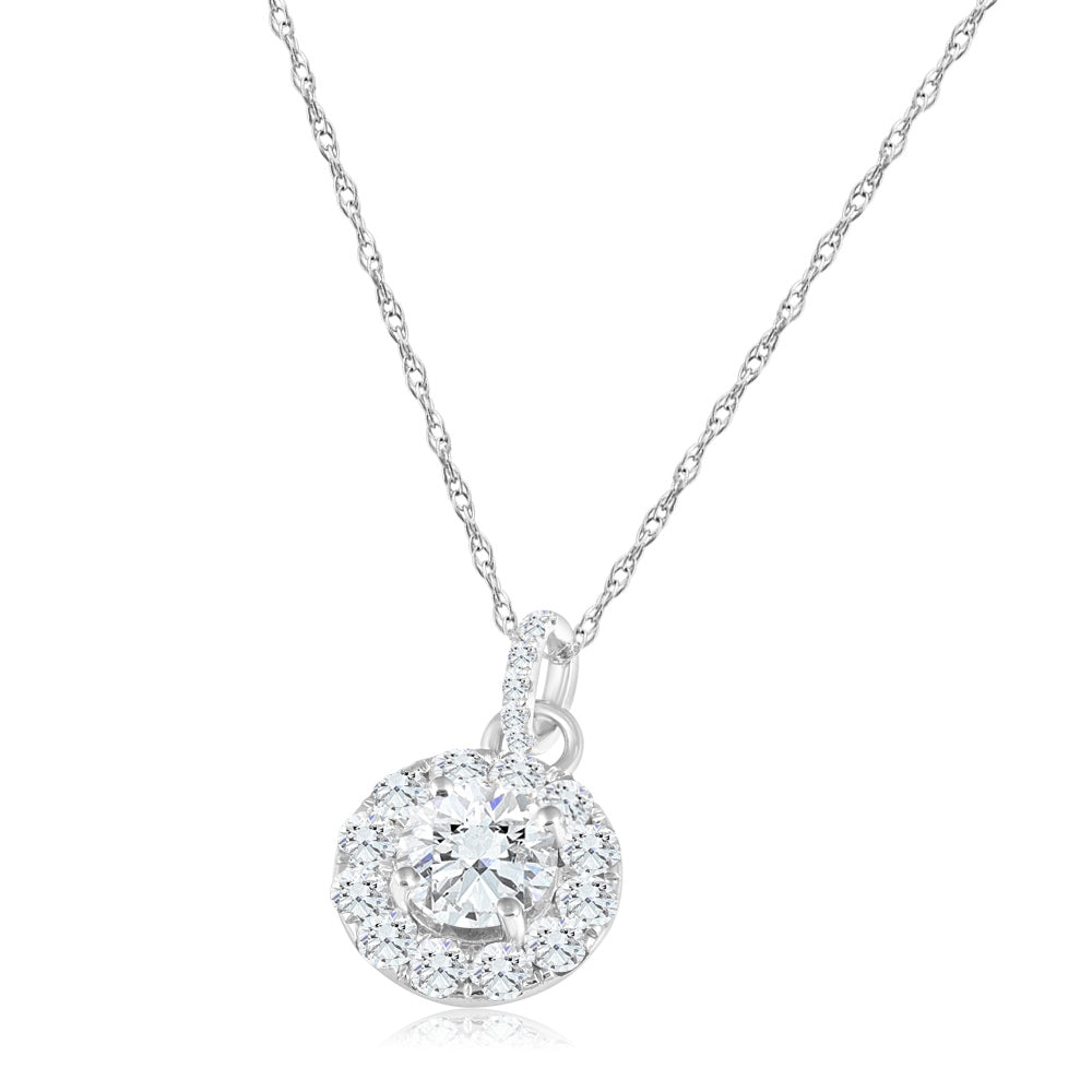 2 Ct TW Diamond (1ct center) Halo Pendant 10k White Gold Necklace