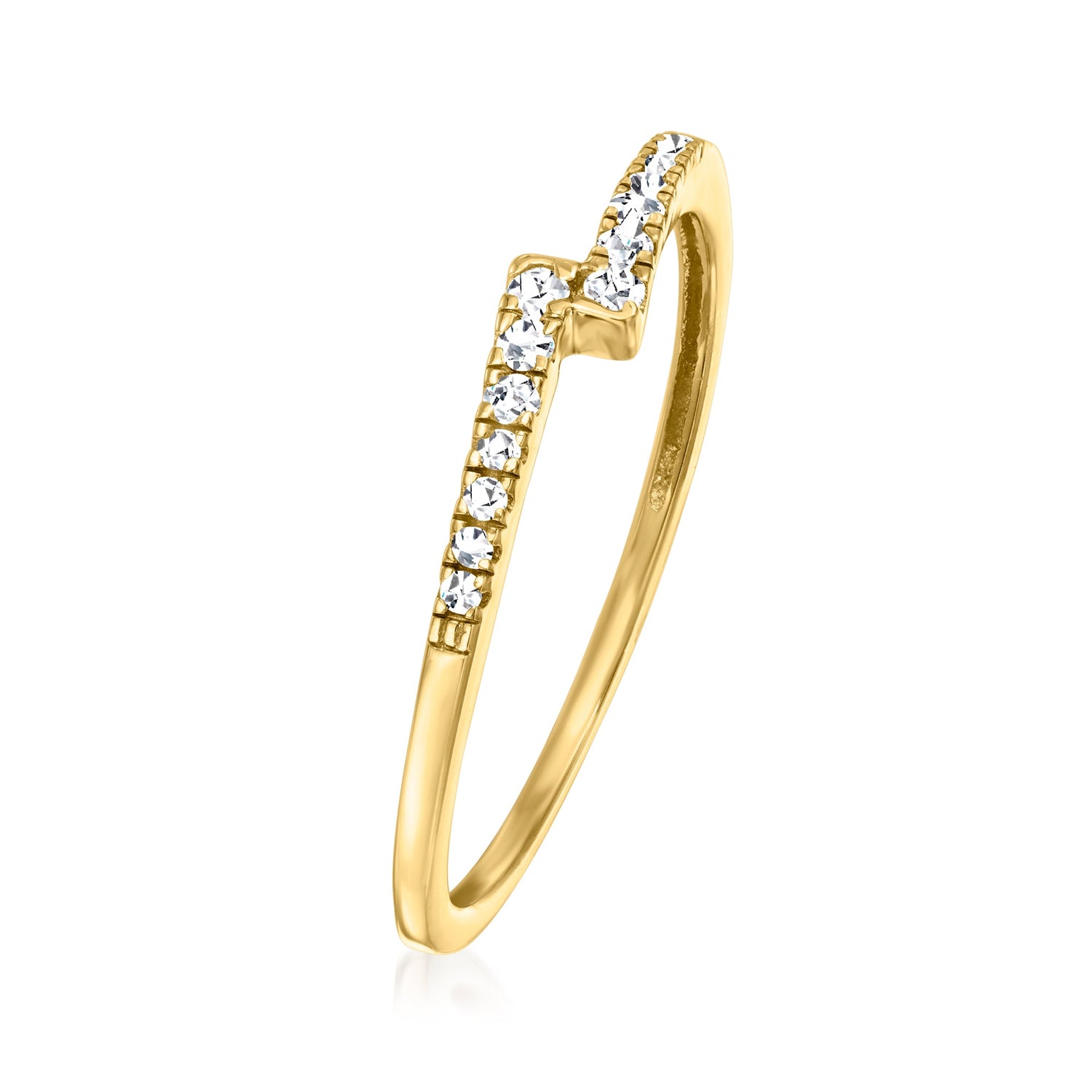 10k yellow gold. .10 ct. t.w. round natural diamonds (I-J color, I2 clarity). Polished finish. 1/8-inch wide. Size 5.