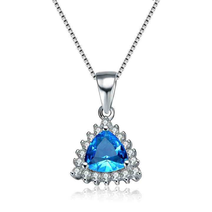 Sterling silver with blue cubic zirconia pendant surrounded by clear cubic zirconias.