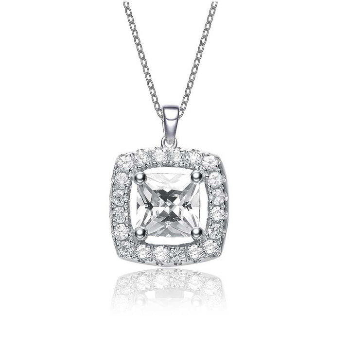 Gv Sterling Silver Cubic Zirconia Square Shape Necklace