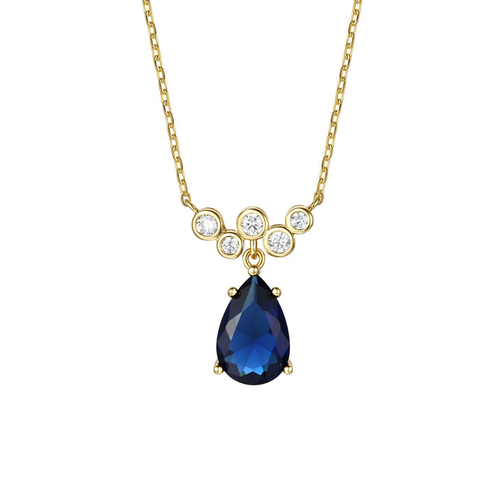14k Gold Plated Sterling Silver With Blue Sapphire & Diamond Cubic Zirconia Bubble Chevron Raindrop Necklace