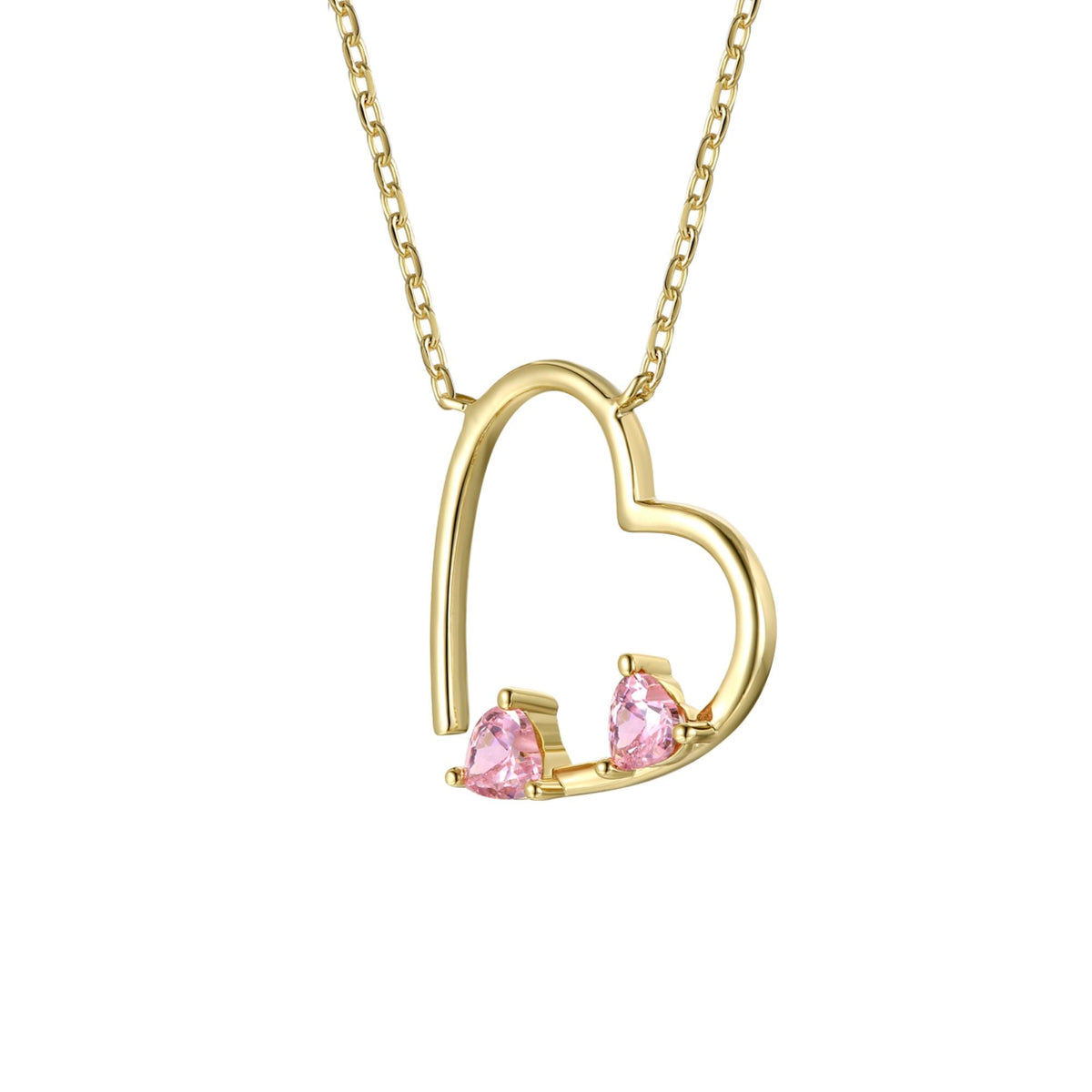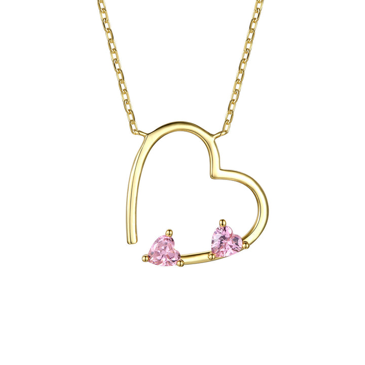14k Gold Plated Sterling Silver With Pink Diamond Cubic Zirconia Open Heart Layering Necklace
