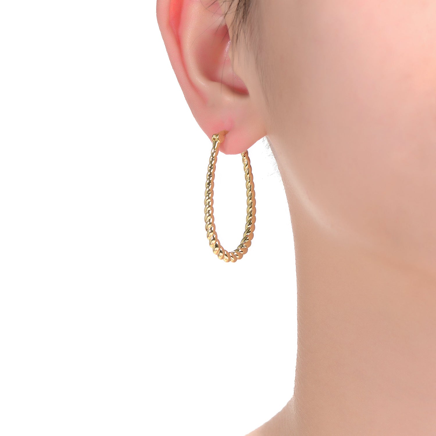 Crafted in 14k gold-plated sterling silver. Designed with a twisted texture and secured with a latch-back closure.