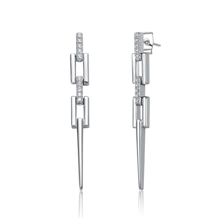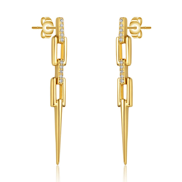 These Cubic Zirconia Drop Earrings by Genevive Jewelry are a modern take on timeless elegance. Crafted with a captivating link design, each earring features alternating polished gold segments and pavé-set clear cubic zirconia, creating a graceful and luminous drop effect. Finished in luxurious 14k gold plating, these earrings are a stunning choice for adding everyday shine or gifting on special occasions.