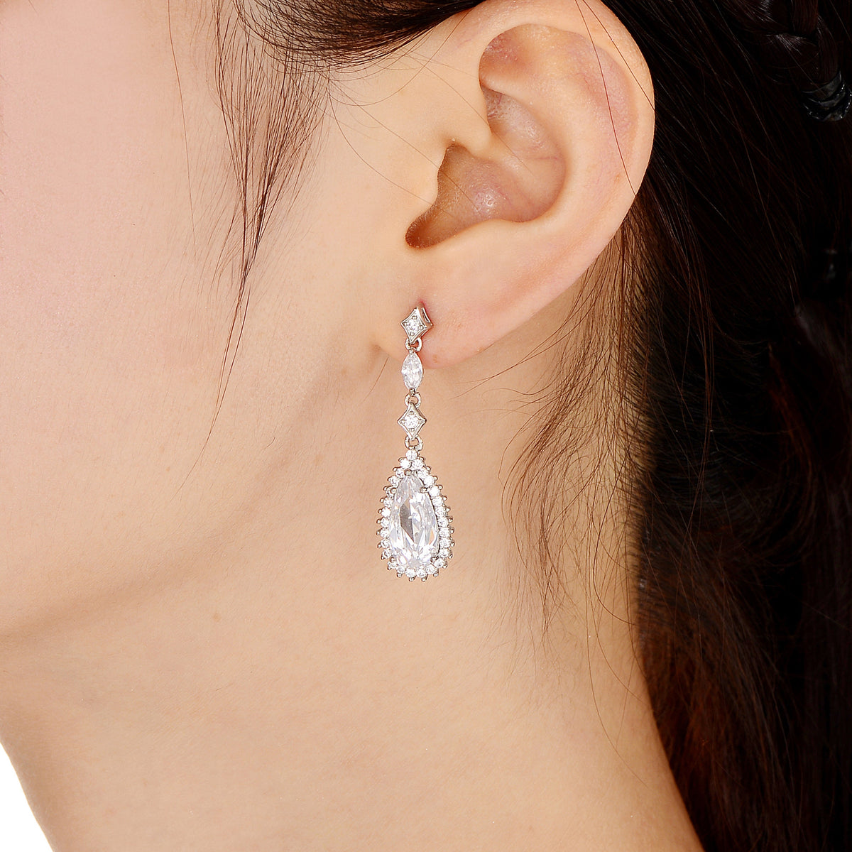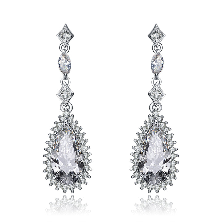Sterling Silver Pear Drop Cubic Zirconia With Halo Burst Earrings