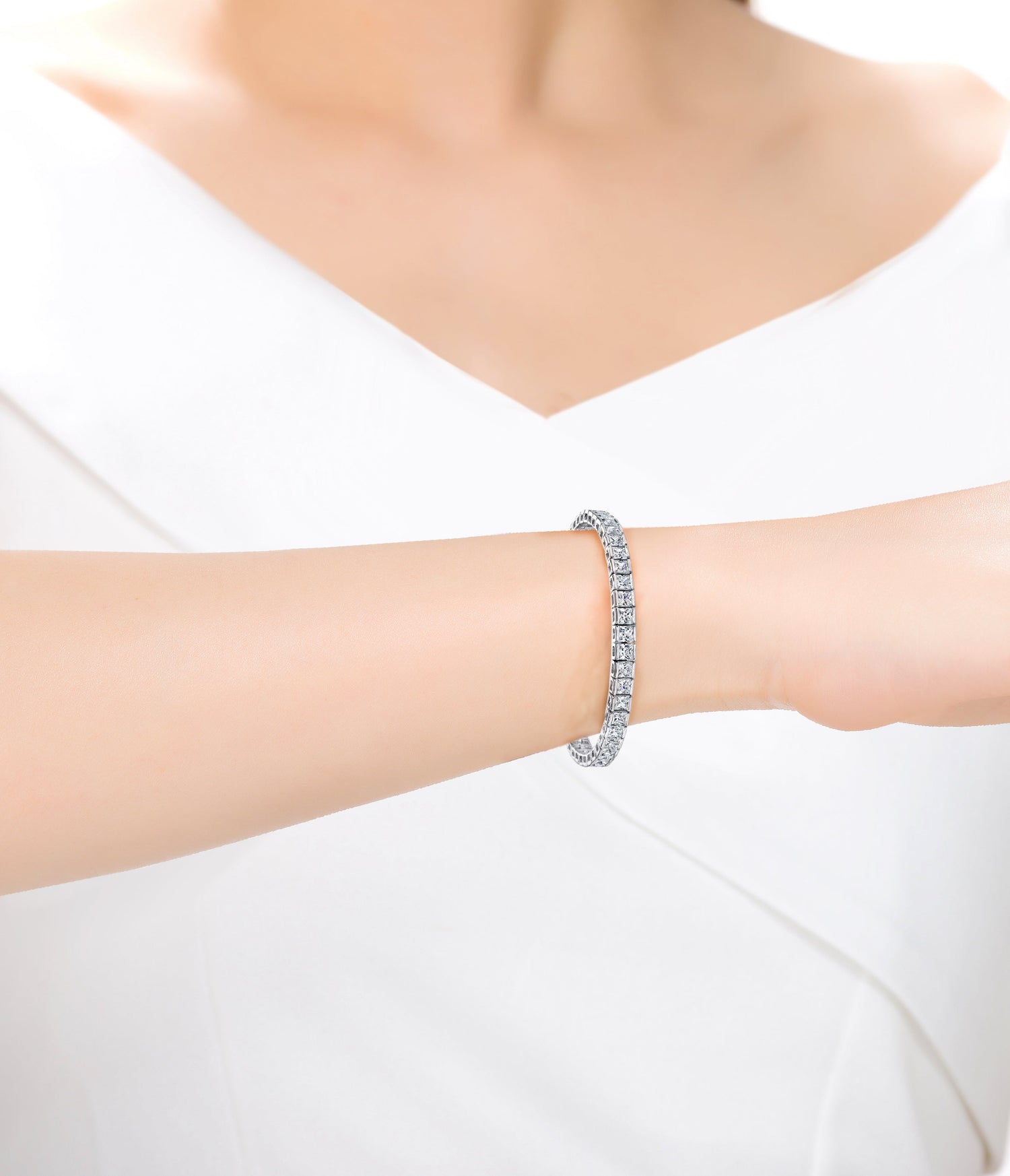 Ra Rhodium Plated Cubic Zirconia Princess-cut Tennis Bracelet