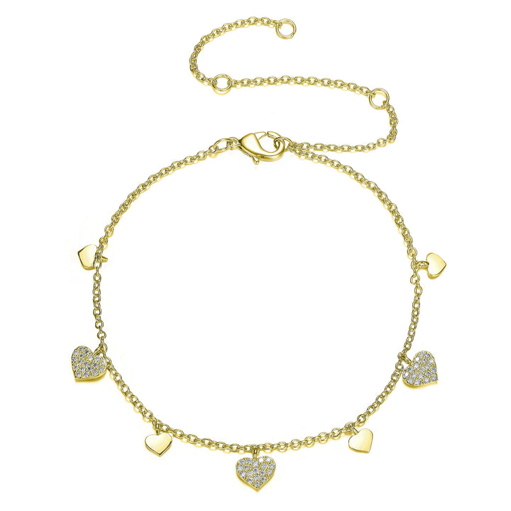 Sterling Silver 14k Gold Plated Cubic Zirconia Heart Charm Bracelet