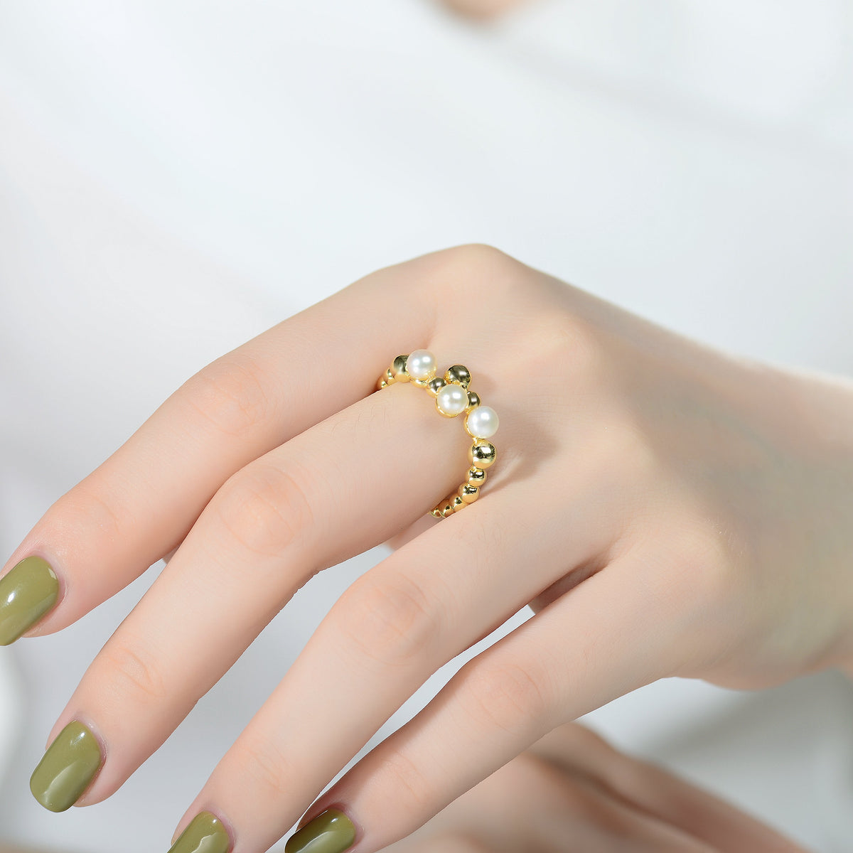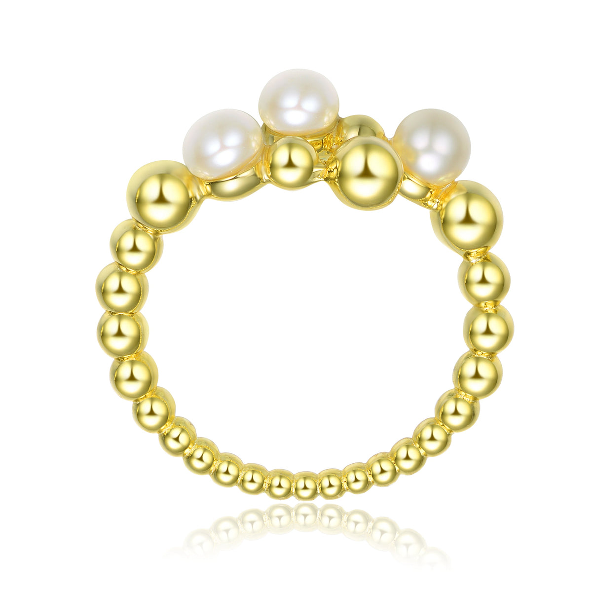 This Ra Sterling Silver with Gold Plated Freshwater Pearl and Cubic Zirconia Adjustable Ring by Rachel Glauber combines elegance and modern design. The ring features a white round freshwater pearl paired with gold-plated solid beads and accented with cubic zirconia. Crafted from sterling silver with gold plating, this adjustable ring is a luxurious addition to any collection.