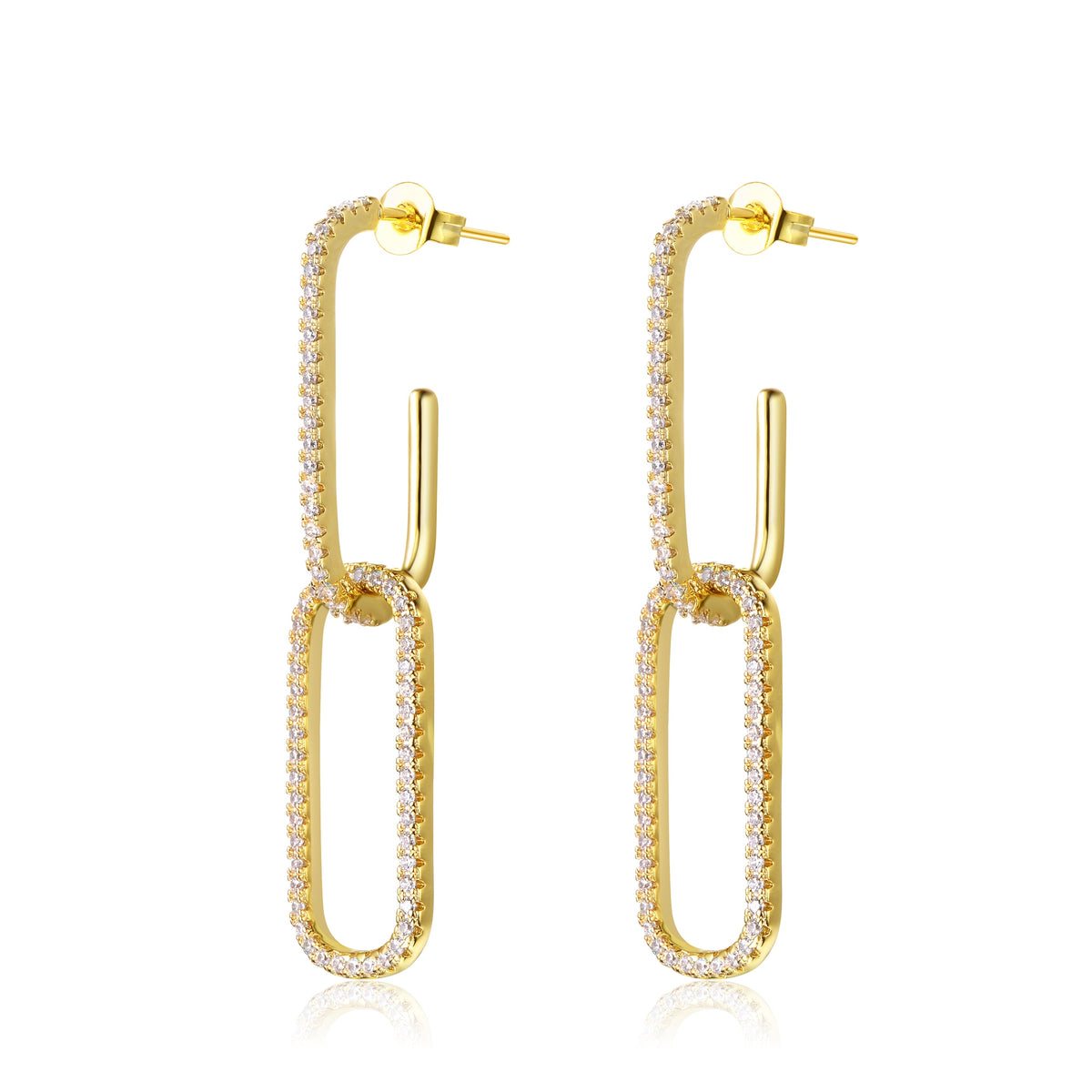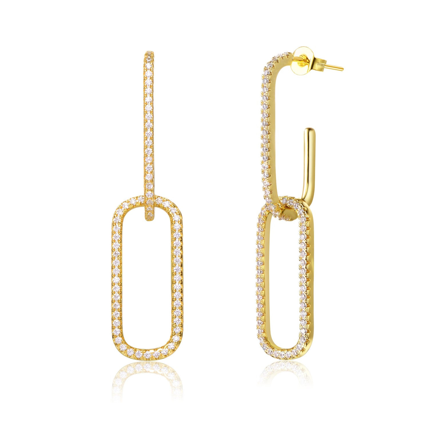 Sterling silver with 14k gold plating and clear cubic zirconia. Secure butterfly closure.