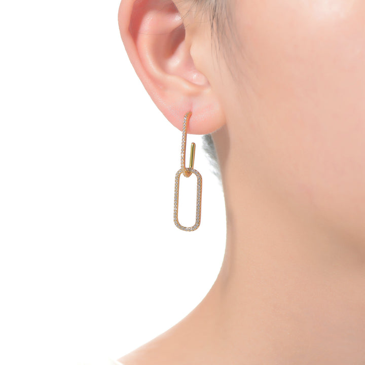 Ga Sterling Silver 14k Gold Plated Clear Cubic Zirconia Square Drop Butterfly Earrings