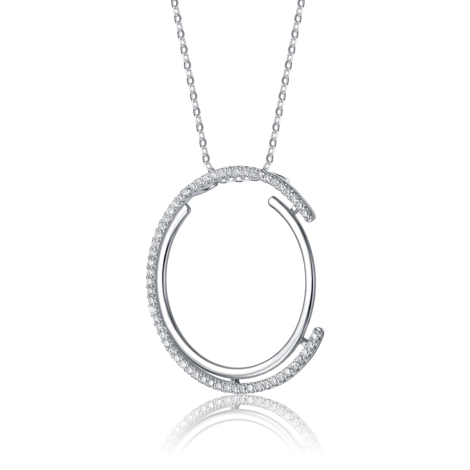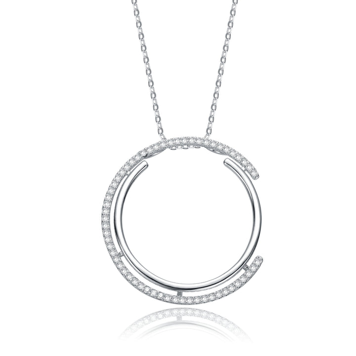 White Gold Plated With Diamond Cubic Zirconia Concentric Eternity Pendant Necklace In Sterling Silver