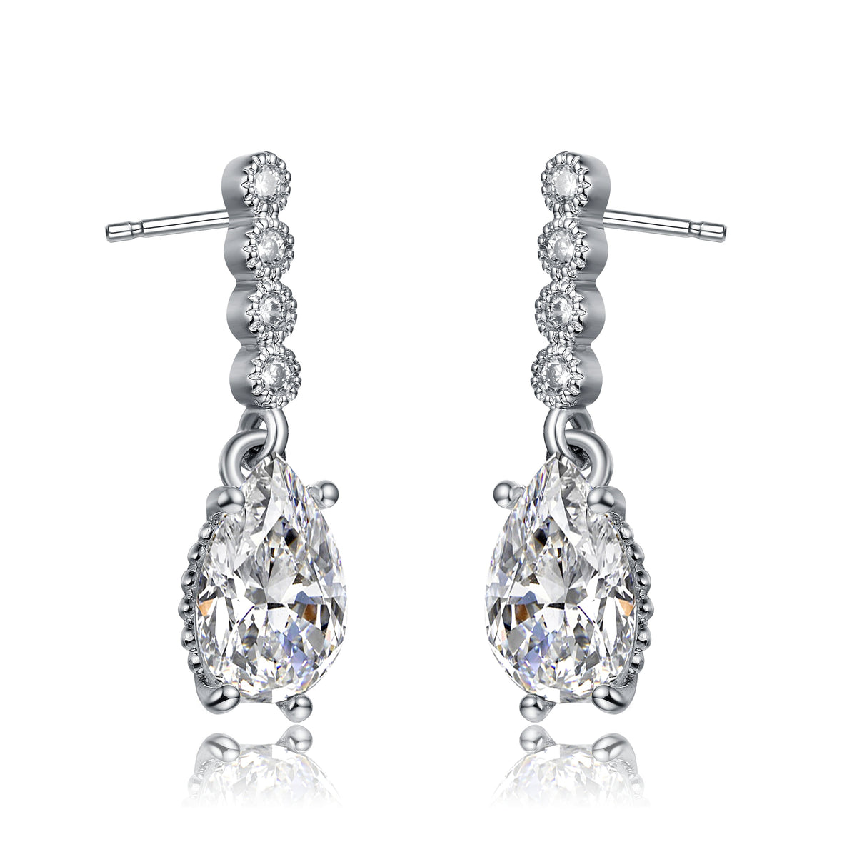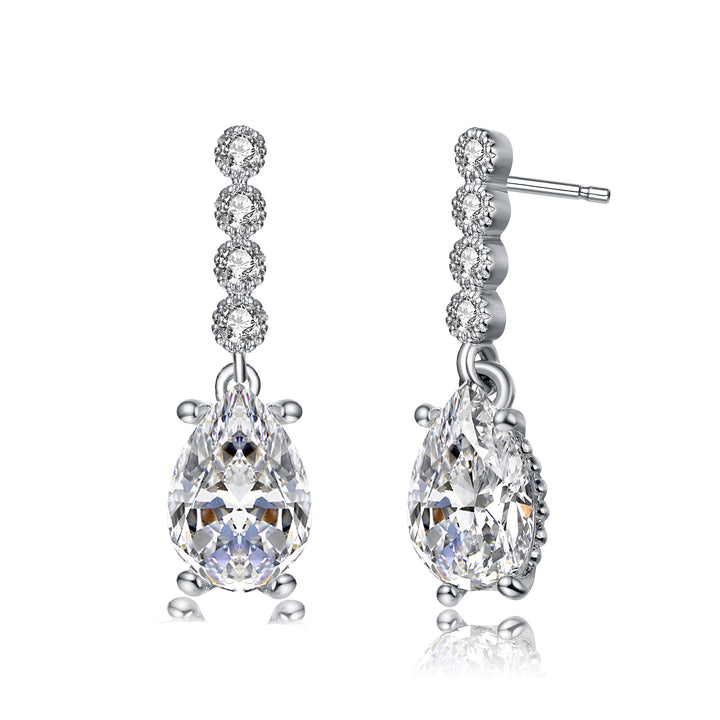 Crafted in sterling silver with rhodium plating. Featuring clear round and baguette cubic zirconia stones. Secured with butterfly closures.